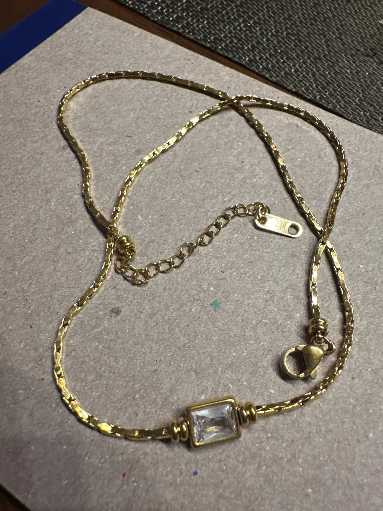 Add a touch of luxury with Bethany, a personalized handmade flat horsewhip chain plated with 18K gold. This woven chain necklace is stylish and durable, crafted with 18K gold-plated stainless steel and cubic zirconia stones. Treat yourself or a loved one to this dainty, flat horsewhip chain necklace that'll last a lifetime.