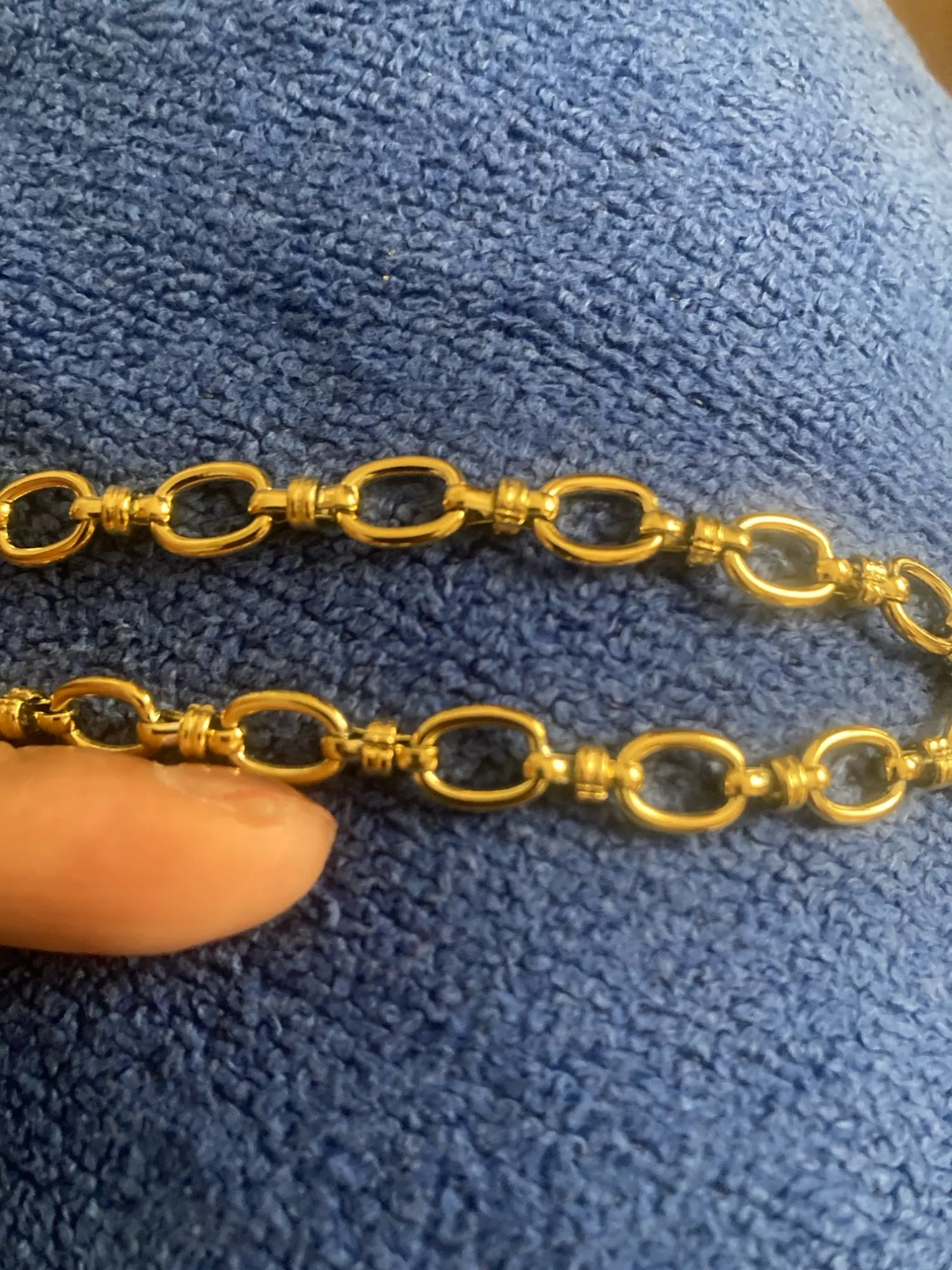 Very beautiful piece, color quite close to gold. I did not check to see if it is really gold-plated. The clasp is a bit hard. I am very satisfied with my purchase. Maybe also worn by a child (costume or traditional attire) the thread mesh was quite fine.