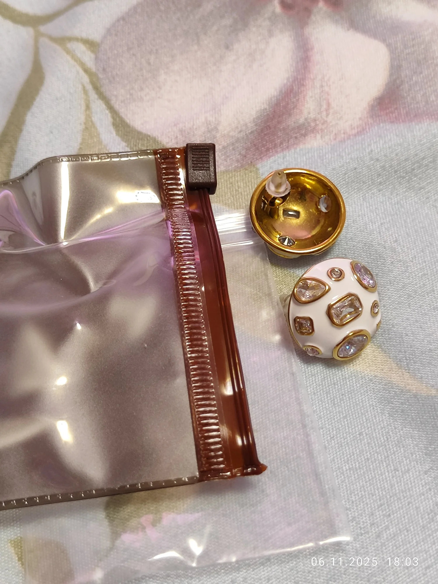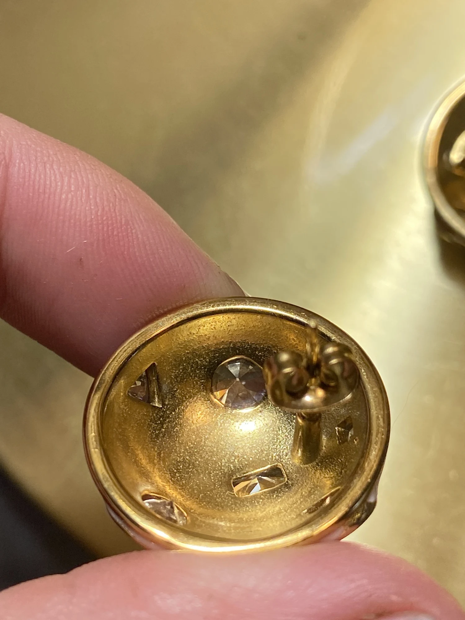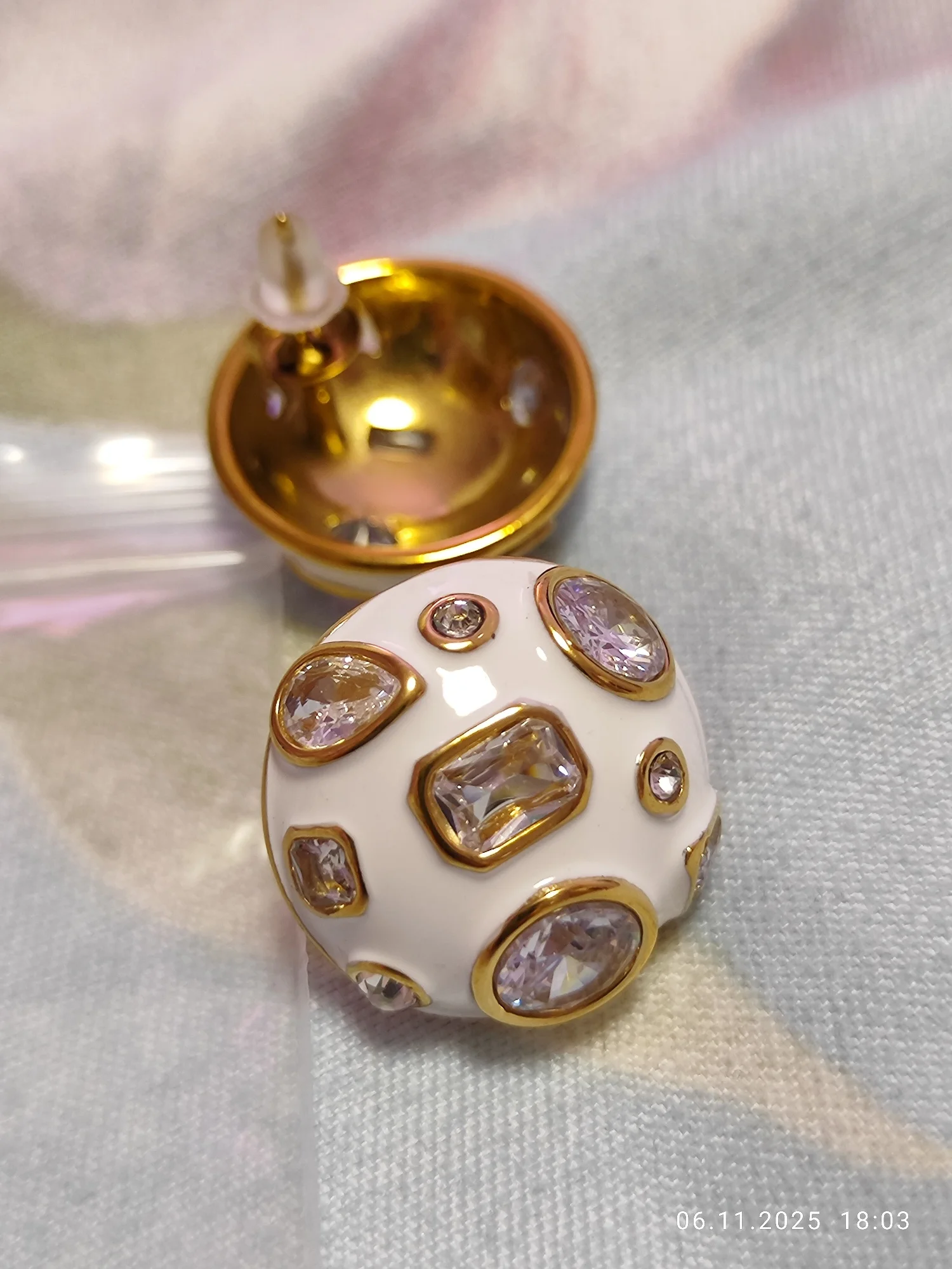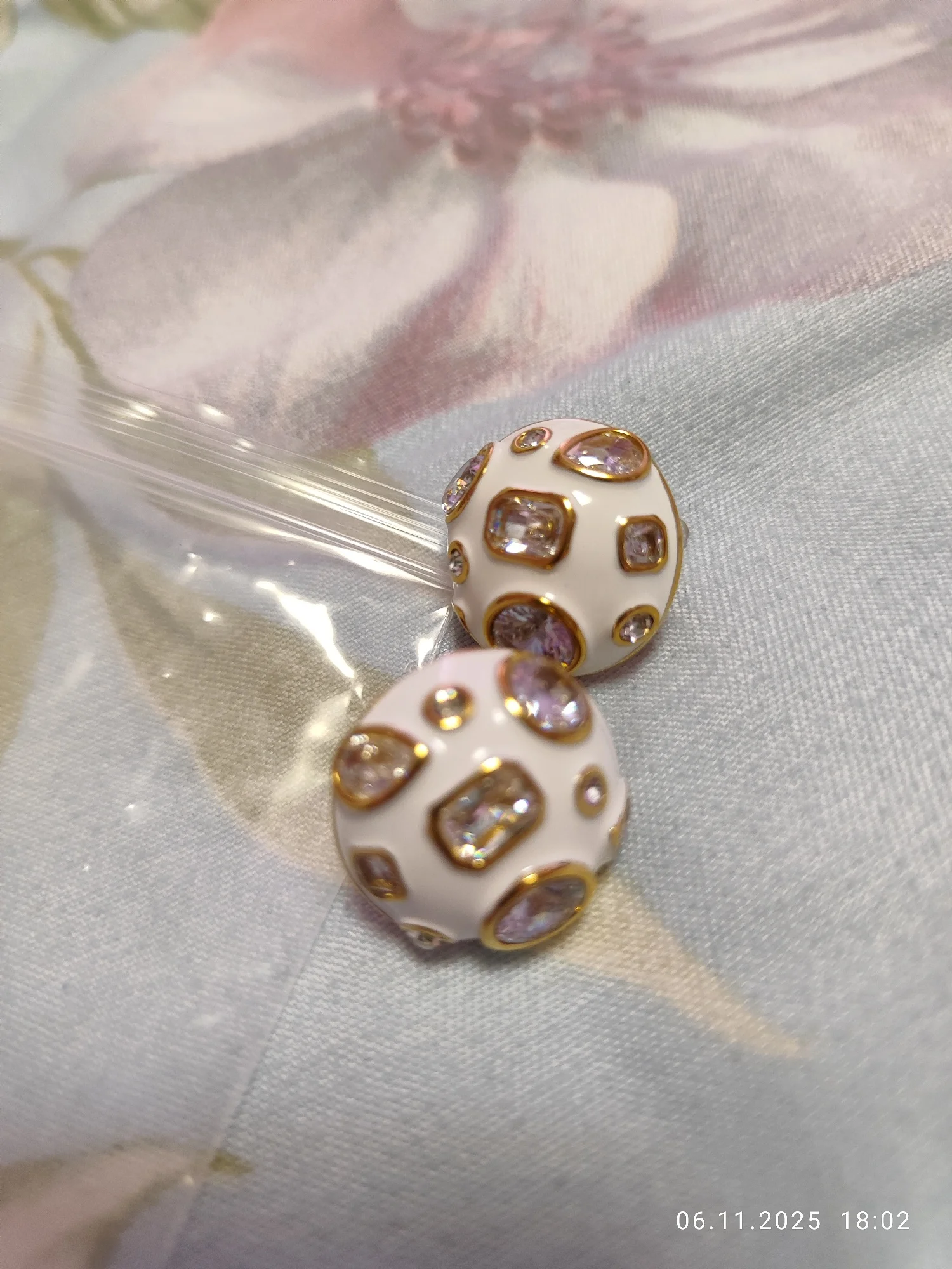 Beautiful, weighty and neat. They drop down a bit on the ear because they are quite heavy, the flower doesn't bend, it's quite long, the clasp is fine. Stones with through holes for better shine.