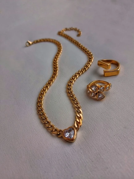 This chic heart crystal necklace adds a touch of sparkle to any outfit. The delicate cubic zirconia pendant and minimalist chain combine to create a versatile piece. It's perfect for layering or wearing solo.