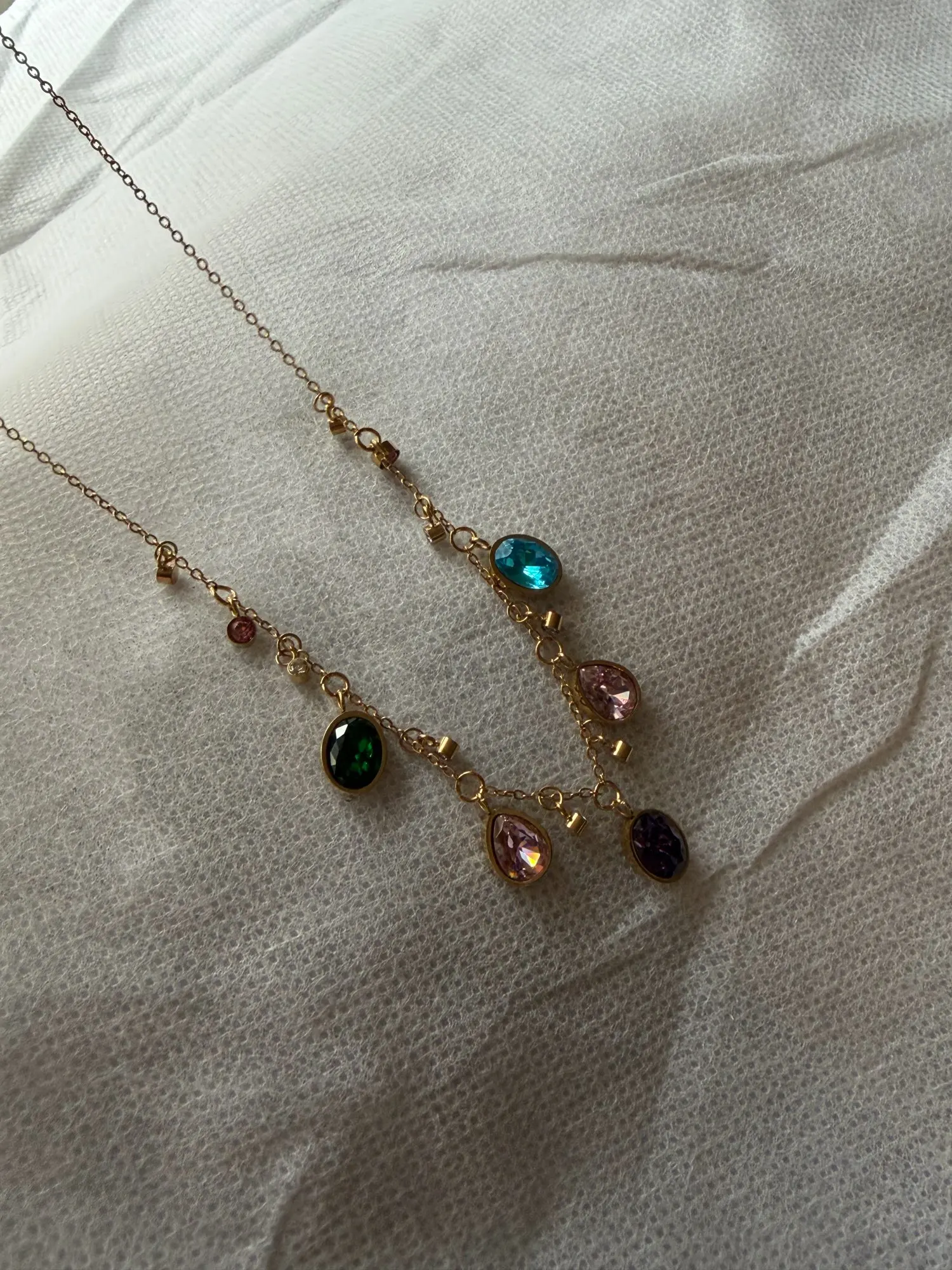 Add a touch of elegance to your collection with our Nadia Necklace. Adorned with colorful crystals, this modern classic exudes a sense of luxury and sophistication. Crafted from durable stainless steel, 18k gold plating, and high-quality cubic zirconia, it's the perfect pop of color for any occasion.