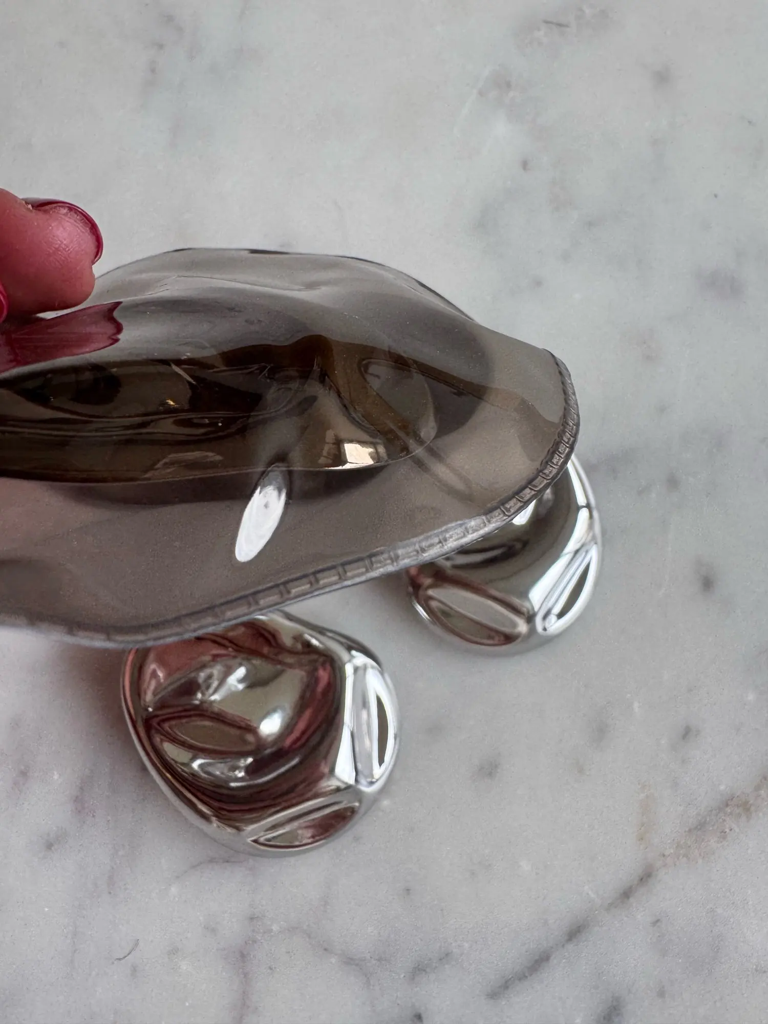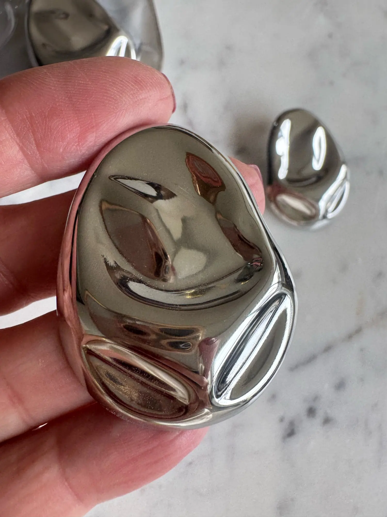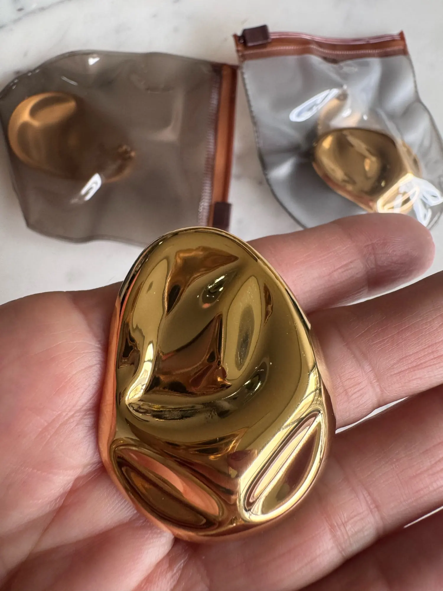 “This XL silver ring in organic trend completely exceeded my expectations. It's lightweight, of excellent quality, and arrived just on time. They look beautiful, elegant, and modern. Without a doubt, I would buy them again. I recommend both the seller's attention and the quality of manufacturing. A piece that elevates any look.”